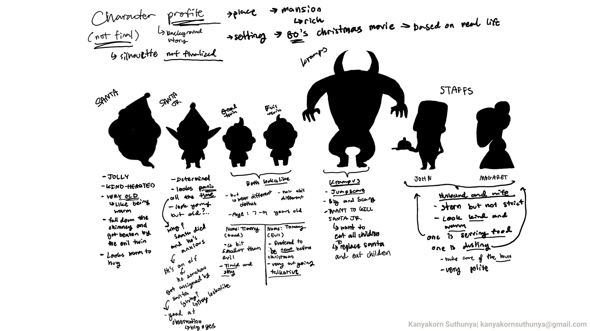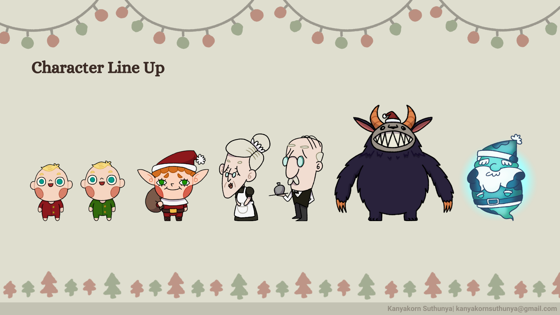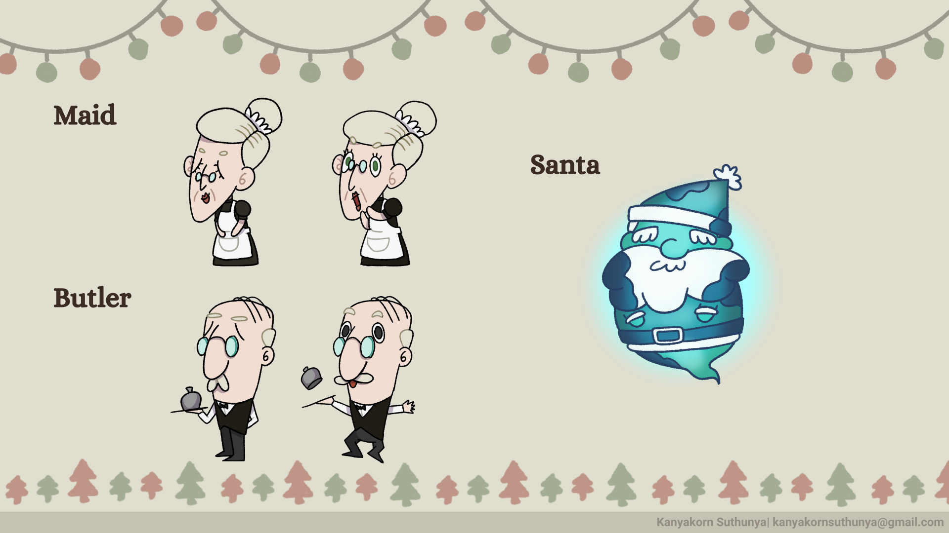 In this project, I am mainly responsible for designing and animating characters corresponding to the game theme: Christmas. There is 1 playable character, Santa Jr; 3 non-playable characters, The Twins and Santa Ghost; and 3 enemies: The Butler, The Maid, and Krampus.